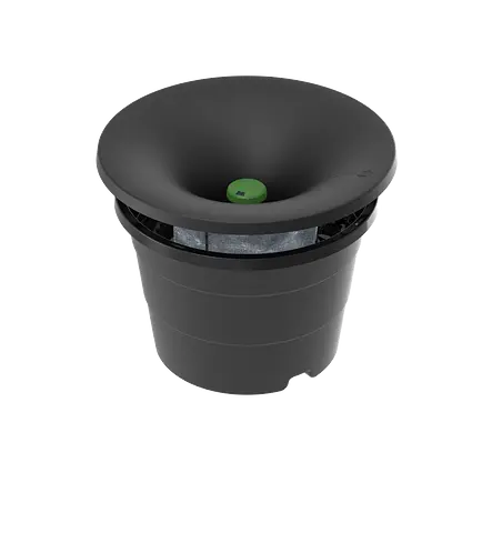 When a mosquito visits a station, she picks up both a larvicide powder and an insect-specific fungus.